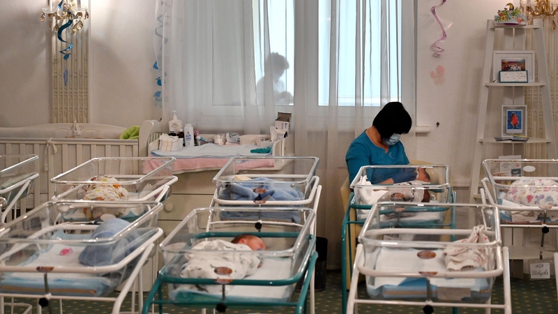 BioTexCom, the facility in question, has released a video showing dozens of newborns lying side by side in separate cots and being cared for by employees.